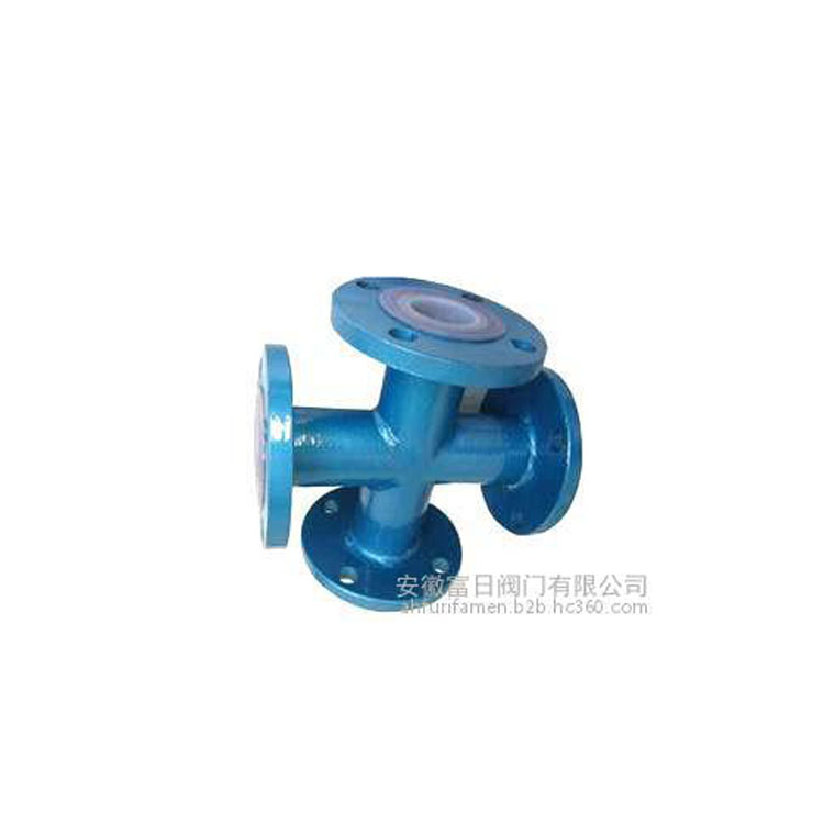 襯氟四通殼體材料選用碳鋼或不繡鋼等,耐壓高;適用于小于180℃的各種濃度的王水、硫酸、鹽酸和各種有機(jī)酸、強(qiáng)酸、強(qiáng)氧化劑的介質(zhì)。