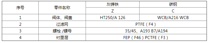 襯氟Y型過濾器主要零材料表: