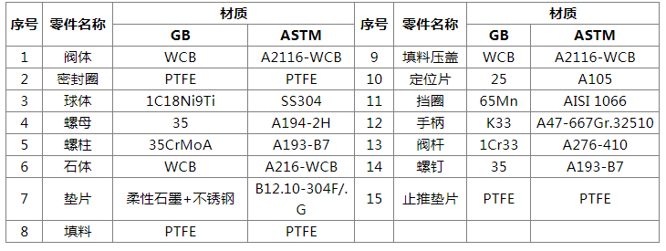 鑄鋼渦輪球閥零件材料: