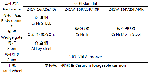 傘齒輪不銹鋼閘閥主要零件材料:
