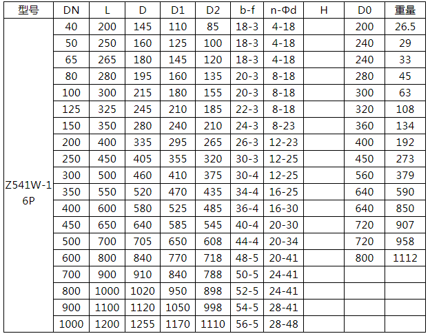 傘齒輪不銹鋼閘閥Z541W-16P相關連接尺寸: