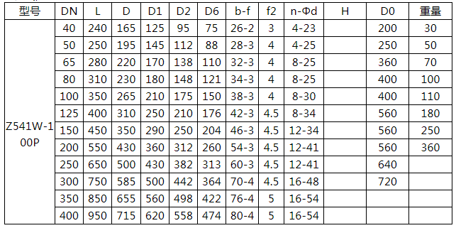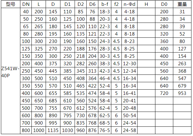 傘齒輪不銹鋼閘閥Z541W-40P相關連接尺寸: