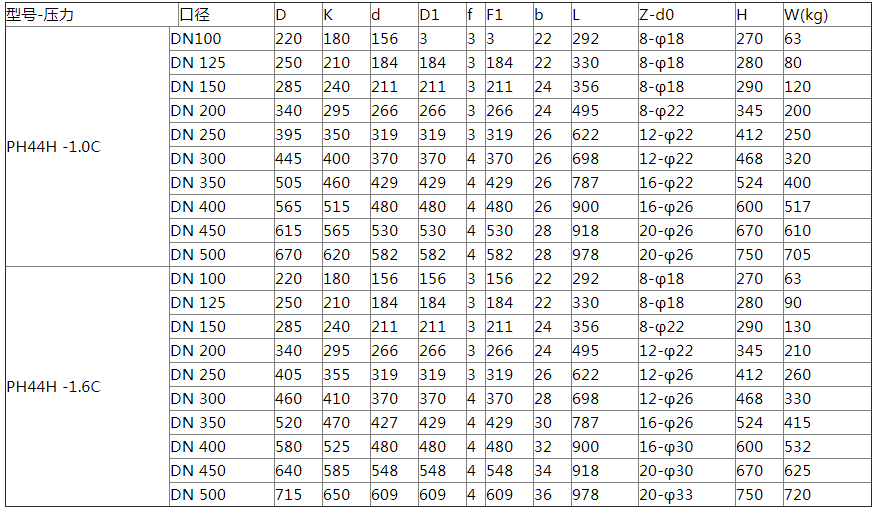 排渣止回閥的主要尺寸及重量: